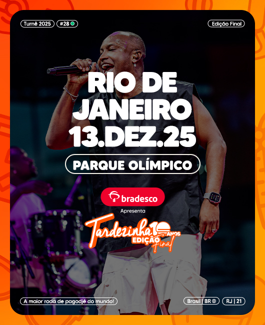 No dia 13 de dezembro, Thiaguinho apresentará o último show do Rio da Edição Final da Turnê de 10 anos da Tardezinha, no Parque Olímpico.