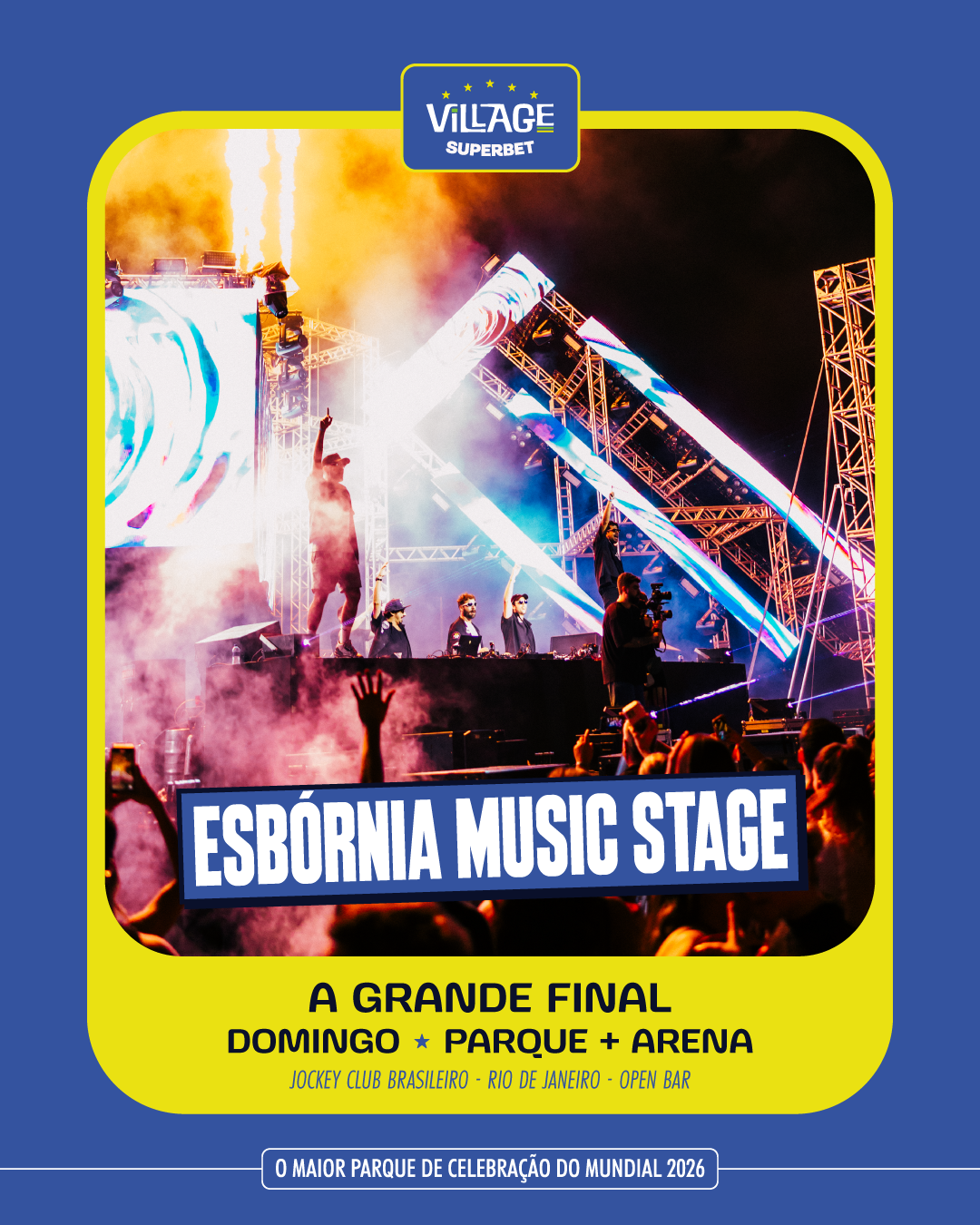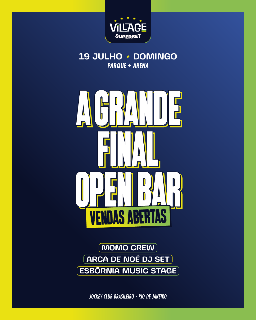 FINAL OPEN BAR Momo Crew, Arca de Noé DJ Set & Esbórnia Music Stage No Village Rio Superbet | Ingresso com desconto SHOWSNORIO FINAL OPEN BAR com Momo Crew, Arca de Noé DJ Set e Esbórnia Music Stage no Village Rio Superbet. Garanta seu ingresso com o cupom promocional SHOWSNORIO e curta a final da copa do mundo!