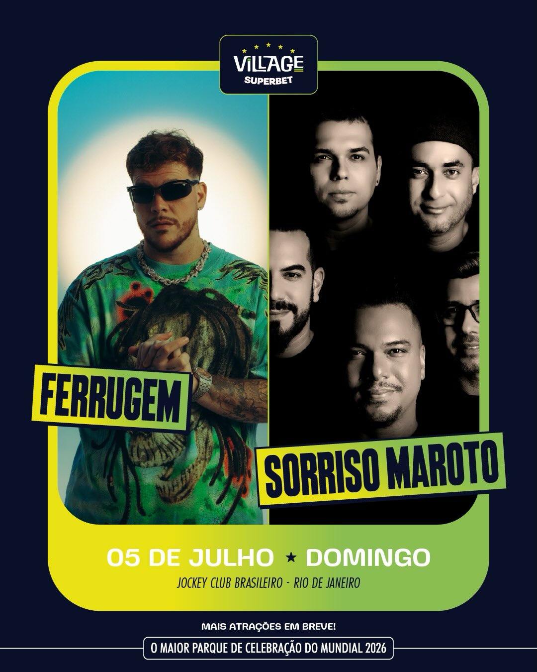Sorriso Maroto e Ferrugem ao vivo no Village Rio Superbet, no Rio de Janeiro. Garanta seu ingresso com desconto no SHOWSNORIO e aproveite um show imperdível de pagode!